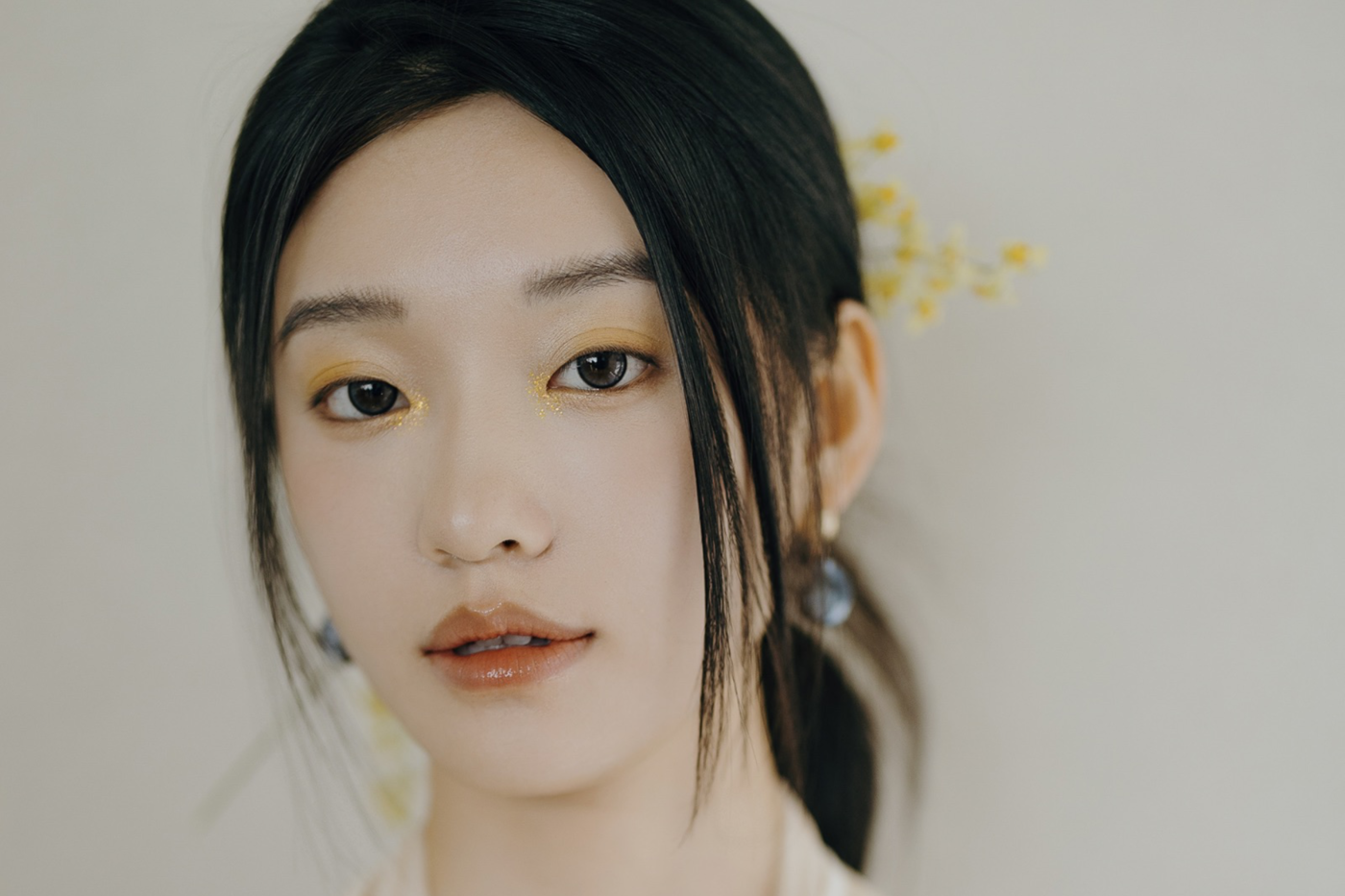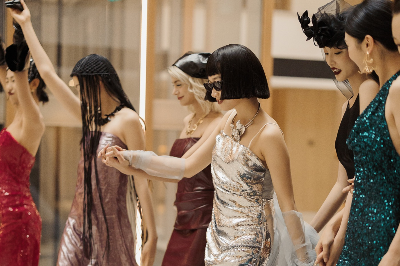 她闪着光